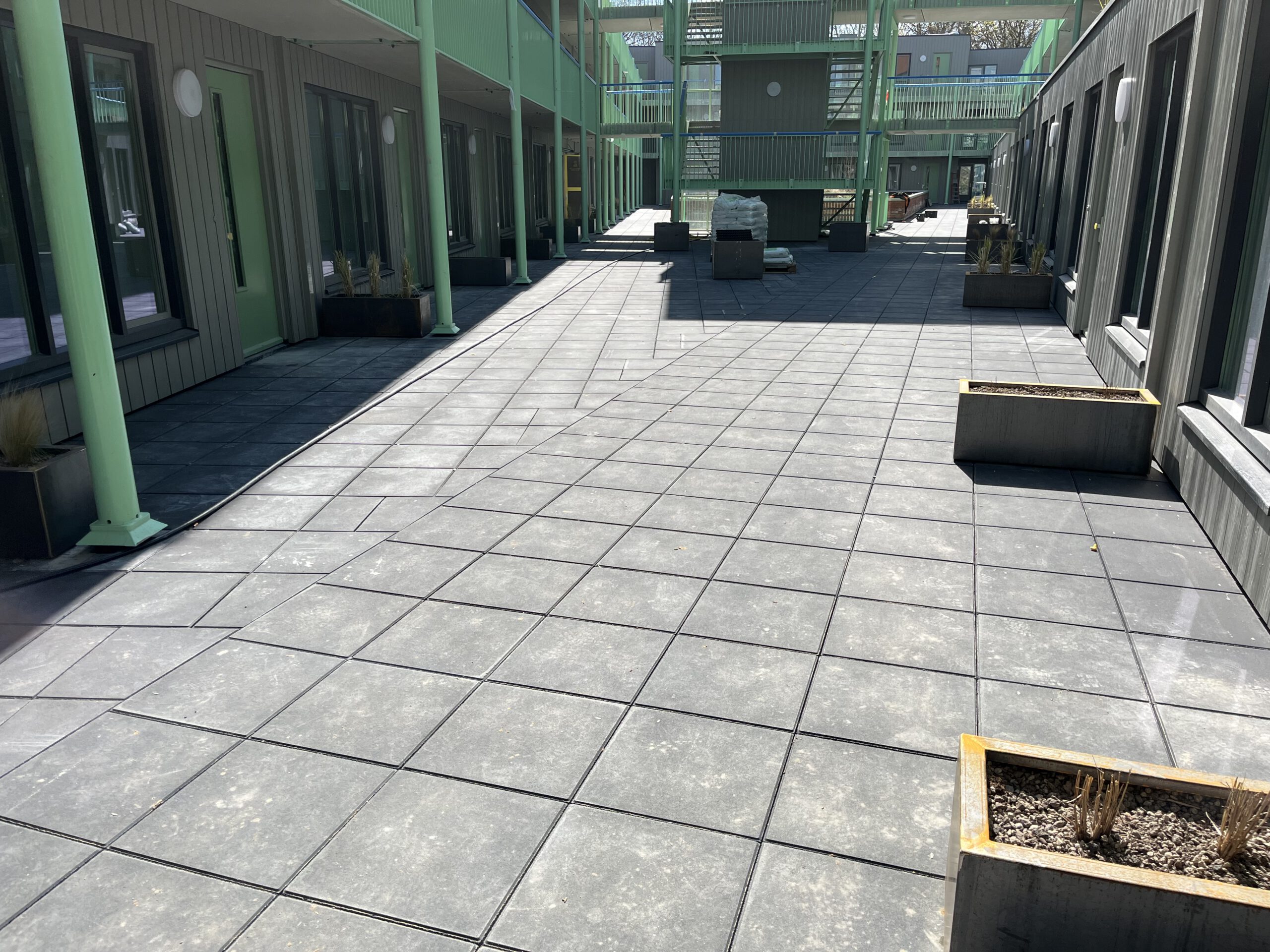 Voor HSB uit Volendam hebben wij een prachtige klus opgeleverd. Met 50×50 betontegels van Kijlstra beton. Op verstelbare dragers van Solidor.